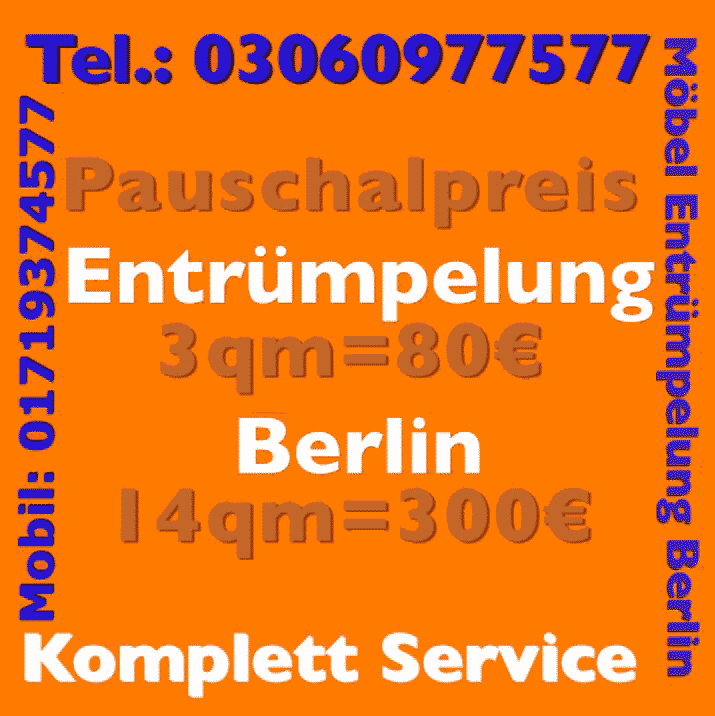 Türmen sich im Wohnung, Abstellraum oder in anderen Räumen jeden Menge Sperrmüll, alte Möbel anderweitige Gegenstände, die künftig nicht mehr benötigt werden, muss eine gründliche Abholung her. Wir bietet alle erforderlichen Arbeiten zum günstigen Komplettpreis. Im Wohnungsauflösung Angebot enthalten sind alle Leistungen von der Anfahrt über das Ausräumen bis hin zum Abtransport und der Abholung beim BSR. Buchen Sie uns - Bulky Waste Pickup 80 Euro sind mit unserem erstklassigen Service, jede Menge Praxiserfahrung viel Können im gesamten Raum privat für Ihnen da!